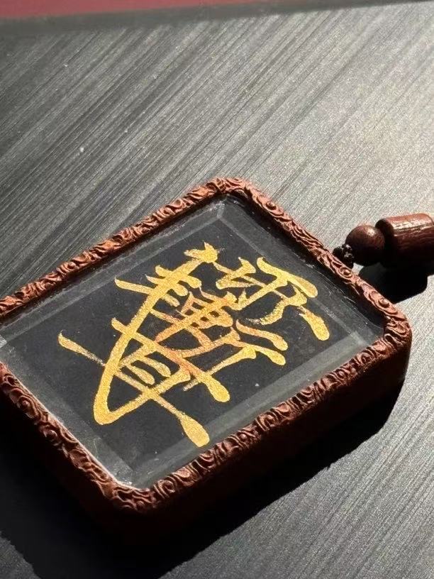 手绘紫薇讳吊坠 雷击枣木 反面四象雕刻 男女通用款